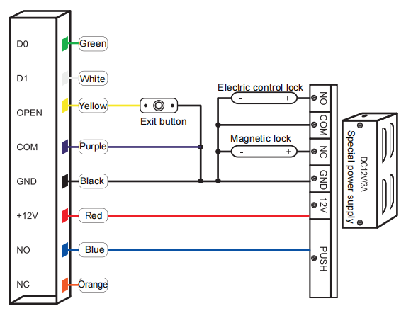> The unlocking signal adopts NO,NC,COM output of relay.